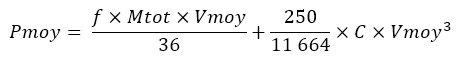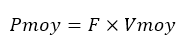 La puissance moyenne Pmoy fournie par toute machine pour faire bouger un objet à une vitesse moyenne Vmoy au moyen d’une force F, est donnée par l’équation suivante :