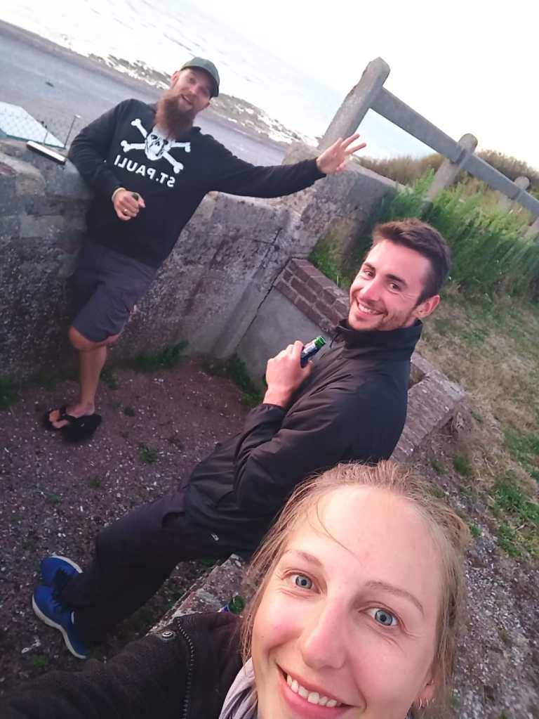 Forts de cette expérience, on a pris la bonne douche bien chaude, et on a fini par picoler comme des cosaques ! J’avais acheté du cidre (nous sommes en Normandie), eux du vin blanc et un pack de bières… CRAC !, gros mélange, bonjour le bien-être demain ! En plus demain je dois mettre les gaz (et donc les abandonner, car il faut que j’avance plus vite) ! J’aurai tout le temps de m’en vouloir d’avoir trop bu !