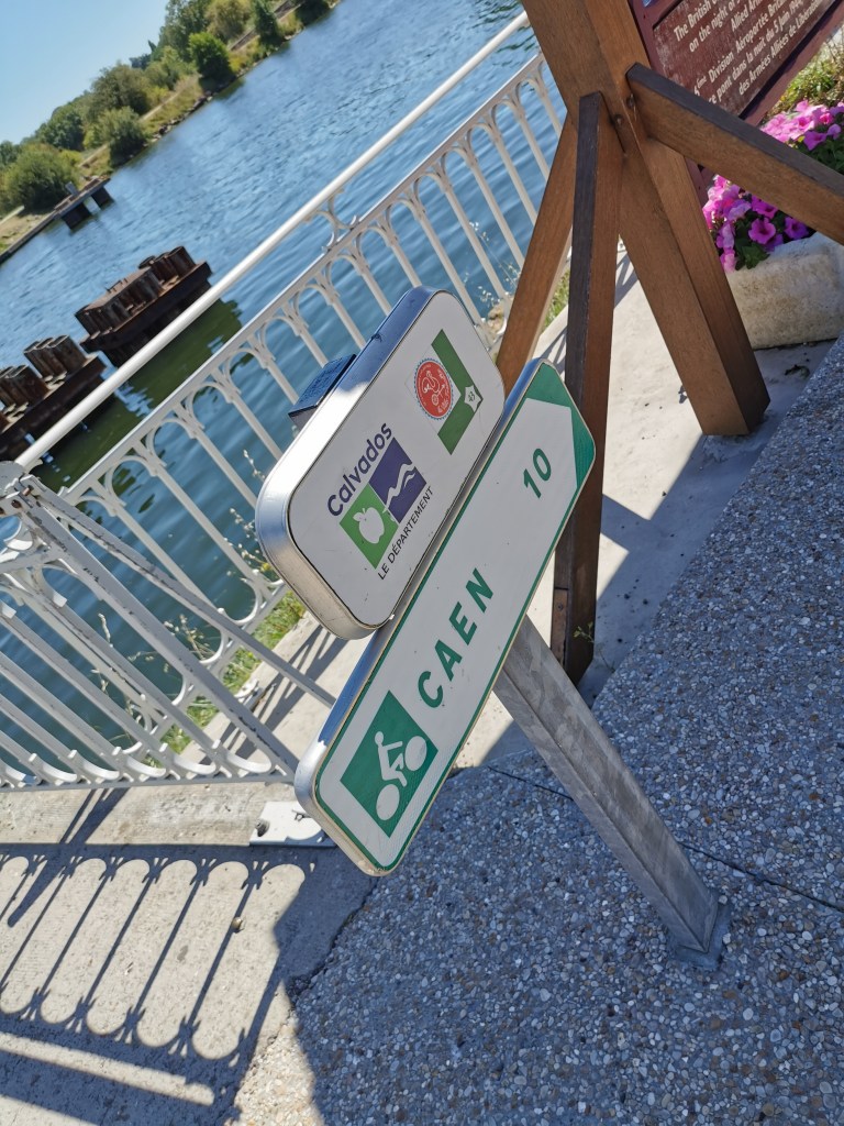 Finalement, après un petit passage dans la campagne au niveau de l’estuaire de l’Orne, j’ai déboulé sur le canal de Caen à la Mer, parallèle à l’Orne, que j’ai longé jusqu’à l’entrée de Caen. C’était tout droit sur 10 kilomètres, j’avais un petit vent dans le dos, je vous ai fait ça à une vitesse ! …
