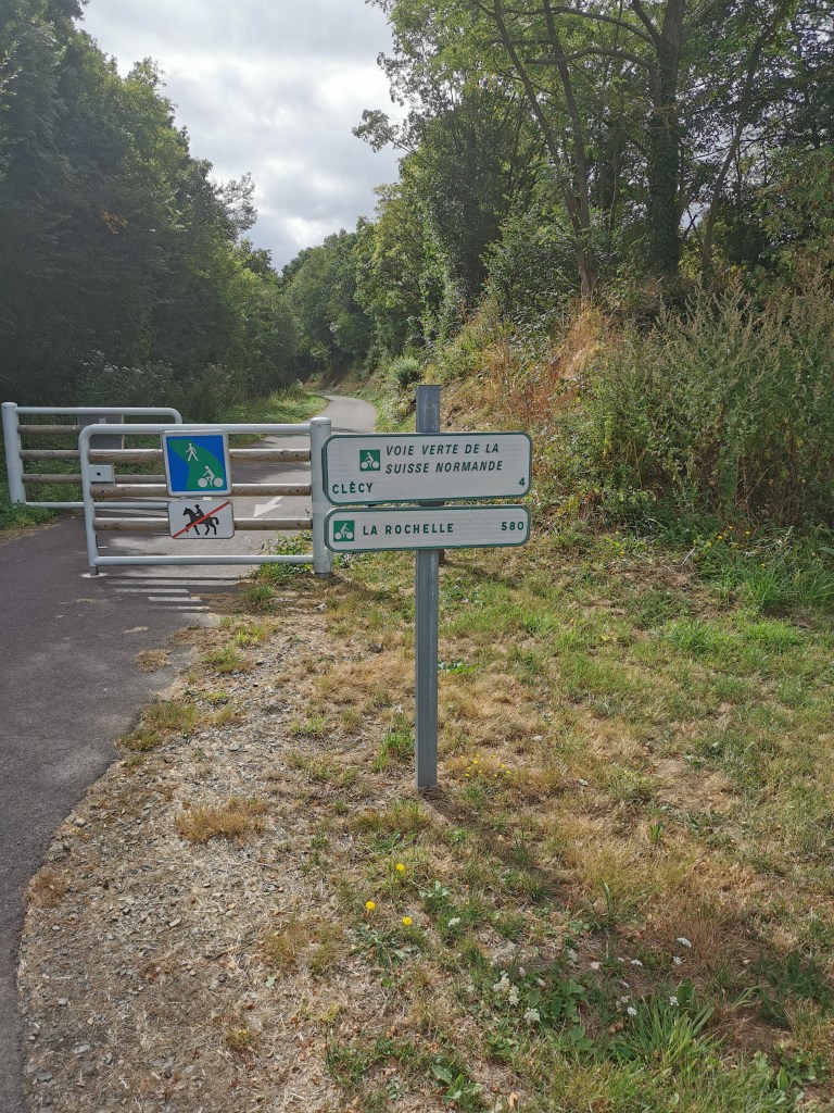 J’ai finalement rejoint la petite ville de Flers, que je n’ai pas traversée – car voyez-vous, je commençais à en avoir un peu marre – pour entamer la dernière partie du voyage, qui était « enfin » une voie verte comme on les aime, c’est-à-dire un chemin assez rectiligne sur 22 km, presque parfaitement plat ! Ça permet d’aller vite !