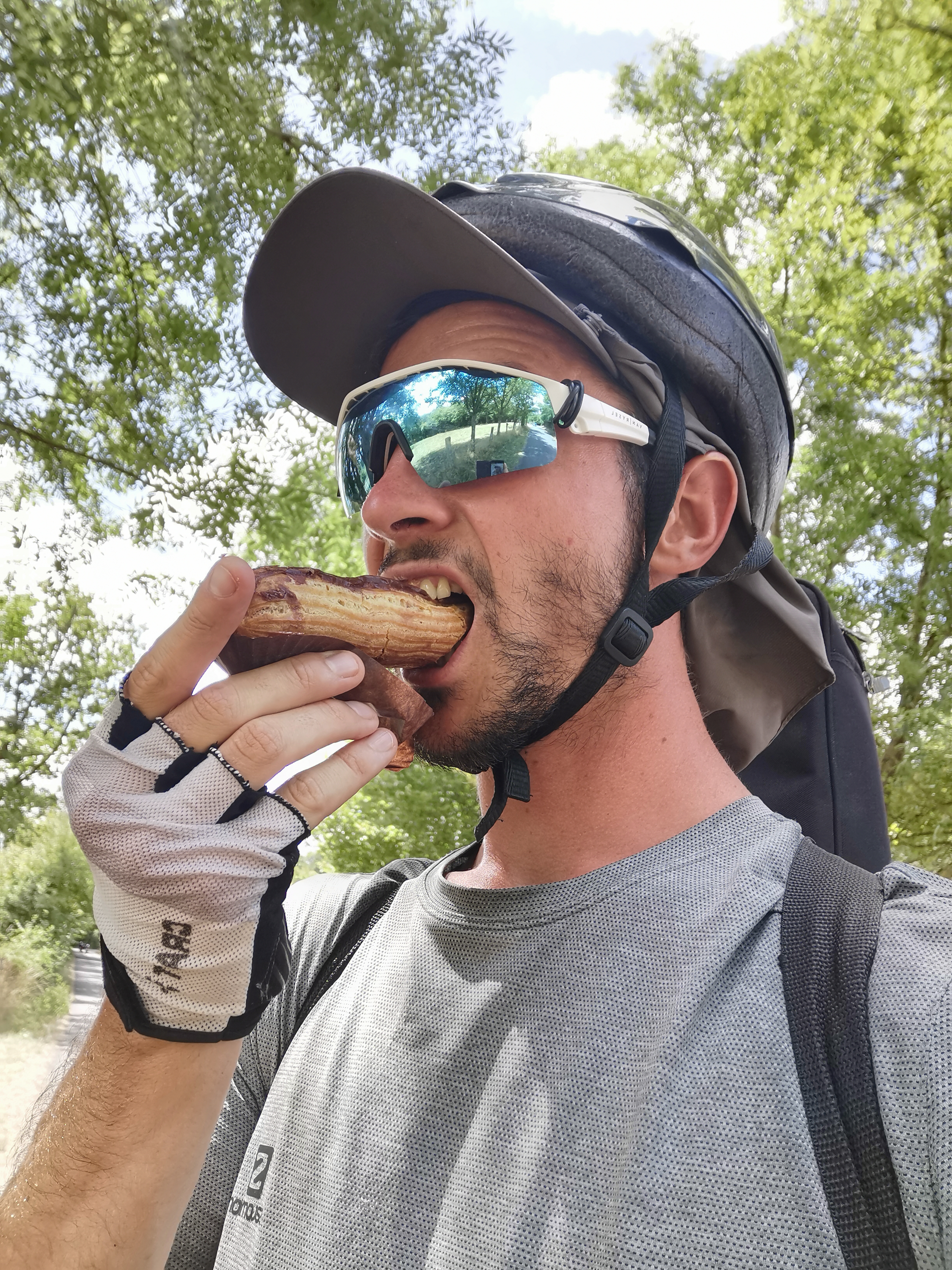 Bref, on a discuté un peu, et on s’est aperçu que l’on avait le même objectif, qui était le camping municipal de Domfront, et que lui connaissait déjà pour y avoir été quelques années plus tôt ! Ça alors ! Je lui ai donc proposé qu’on fasse la deuxième partie de voyage ensemble, mais il m’a dit qu’il devait se reposer un peu, car il n’avait toujours pas fait de pause déjeuner, et qu’on se retrouverait en fin de journée ! Alright sir !