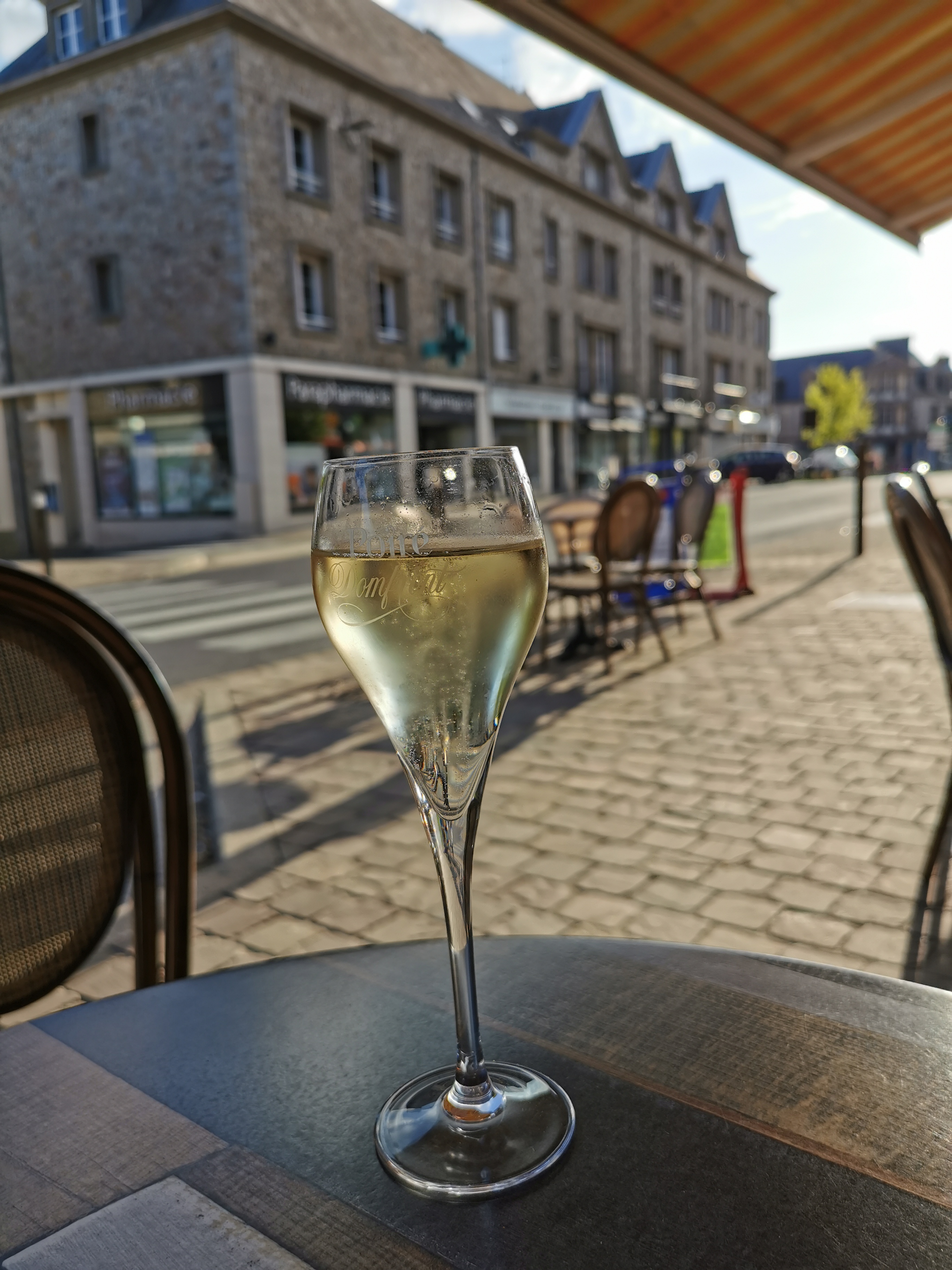 Sinon, après la petite promenade, j’ai quand même bu mon coup habituel du soir, sauf que cette fois j’ai eu droit à la spécialité locale, dont les habitants ont l’air très fiers : c’est le fameux Poiré Domfront (AOP depuis 2006) ! Une préparation ancestrale alcoolisée, à base de poires locales, qui doit contenir au minimum 40% de la variété Plant de Blanc, la variété de poire reine selon les spécialistes du coin. Pour information, on dénombre 90 variétés de poires à Poiré, et 30 d’entre elles sont sélectionnées pour le Poiré Domfront AOP. Ce sont tout de même 100 000 poiriers à Poiré, pour environ 25 000 tonnes de poires produites, qui se concentrent dans le Domfrontais, un verger à poires unique en Europe ! Toutes ces informations sont tirées du site officiel du Poiré Domfront !
